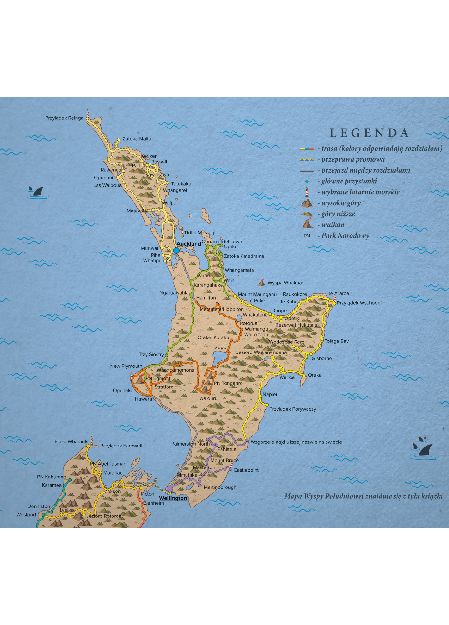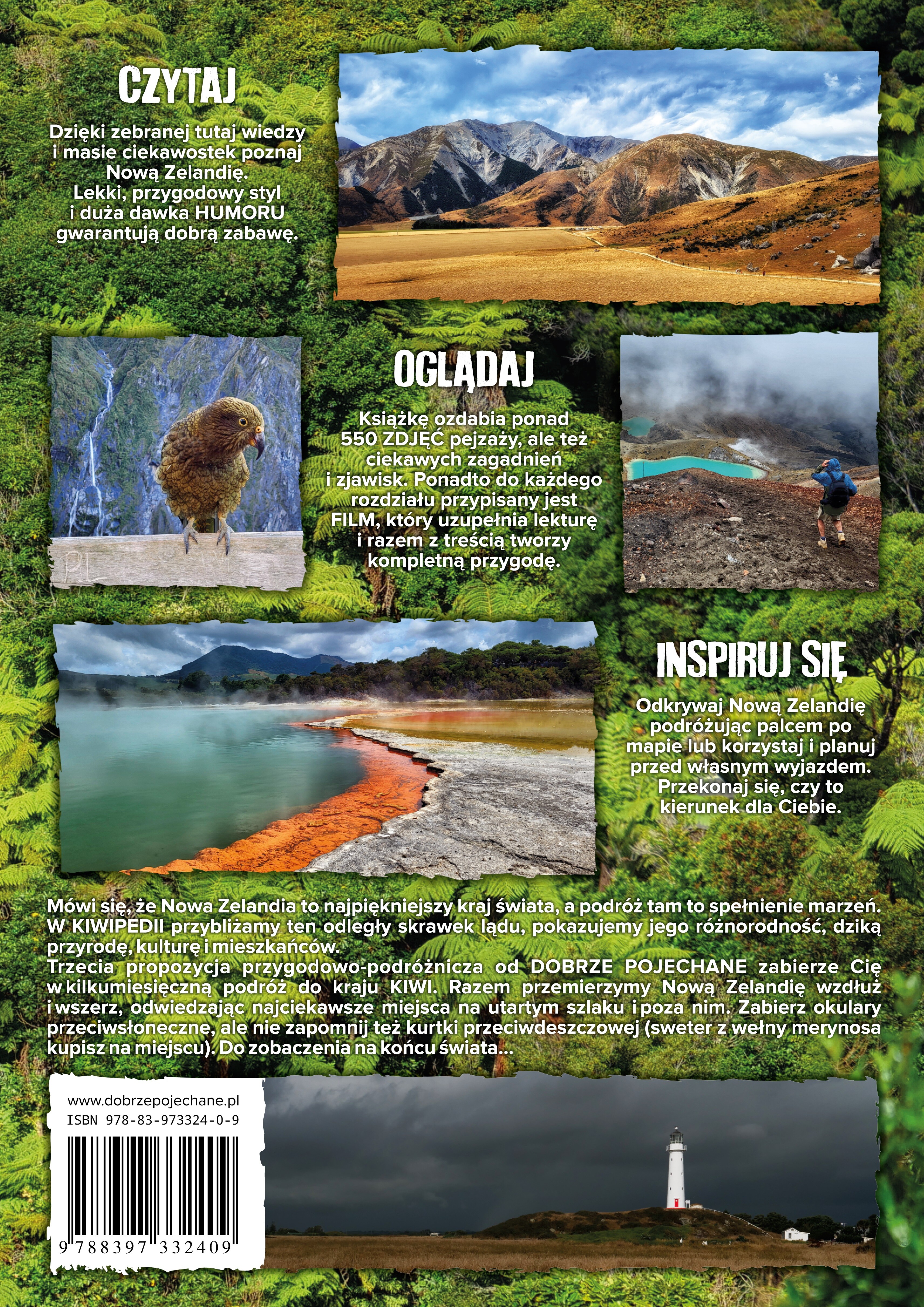 KSIĄŻKĘ POLECAMY ZARÓWNO OSOBOM PLANUJĄCYM PODRÓŻ DO NOWEJ ZELANDII, JAK I "KANAPOWYM PODRÓŻNIKOM", DOSTARCZAJĄC NIEBANALNEJ ROZRYWKI ORAZ MASY INSPIRACJI I WIEDZY.